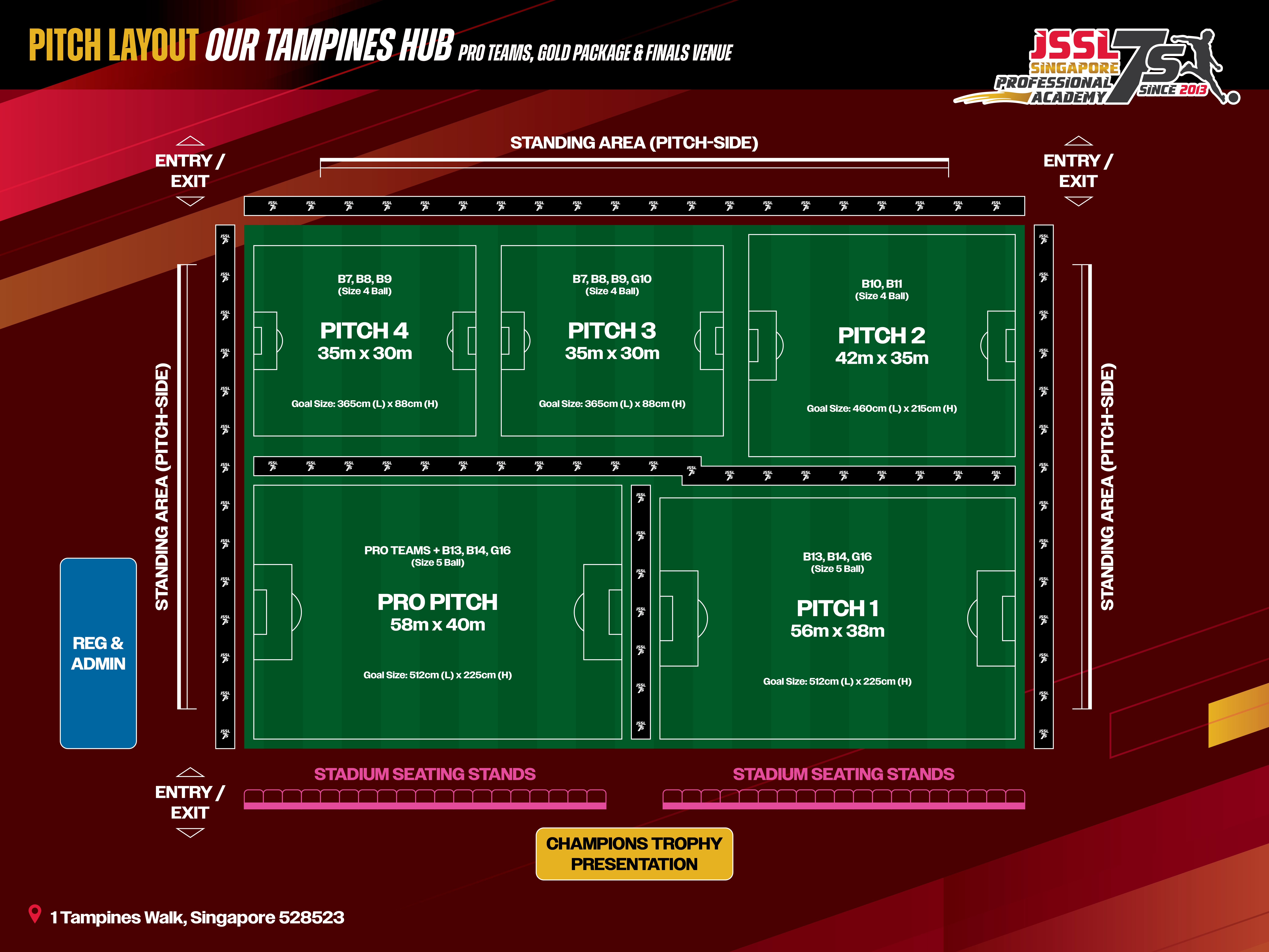 With the JSSL 7's growing year on year, we constantly push the envelope to provide the best tournament experience for our players, coaches, and parents. With more venues and fields to play on, waiting time is minimized, allowing for our young players to showcase their skills on the best pitches in Singapore.